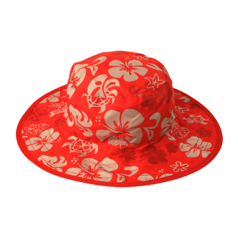 Solhatt från Banz. Röd och blommigt mönster. Solhatten har UV-skydd UPF50+, och skyddar maximalt mot solens UVA- och UVB-strålar.