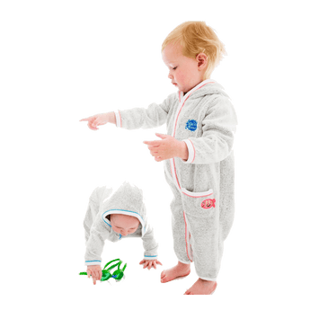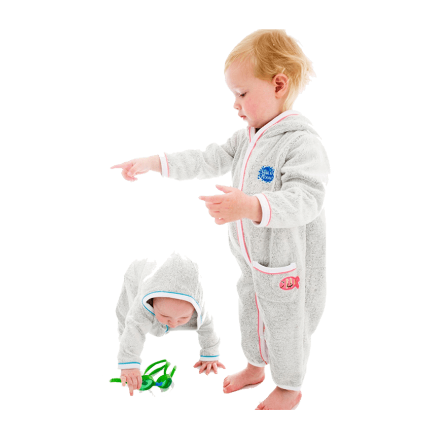 Rocken har både armar, ben och huva, vilket gör att du kan packa in babyn i ett varmt och mjukt täcke/handduk när ni är på babysimningen.