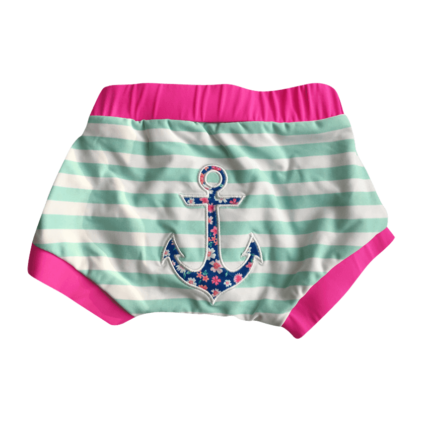 Den har även UPF50 + solfaktor, vilket innebär att den skyddar maximalt mot solens UVA och UVB strålar när barnet är på stranden. Annan solskydd är inte nödvändigt på de ställen på kroppen som blöjan täcker.